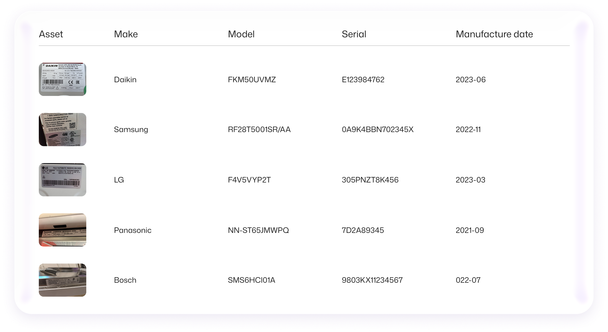 Streamlined asset data management through automated optical character recognition (OCR) and AI-powered asset label recognition.